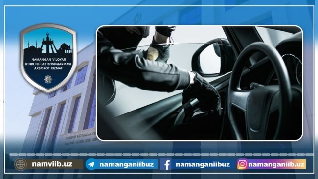 2 мая 2025 года, в органы внутренних дел обратился житель махалли "Юкори Гирвон" Давлатабадского района, 1993 года рождения. Он сообщил, что в ночь на 2 мая неизвестный гражданин украл из его автомобиля "ВАЗ-2106" автомагнитолу "Pioneer", а также денежные средства, в размере 800 тысяч сумов.