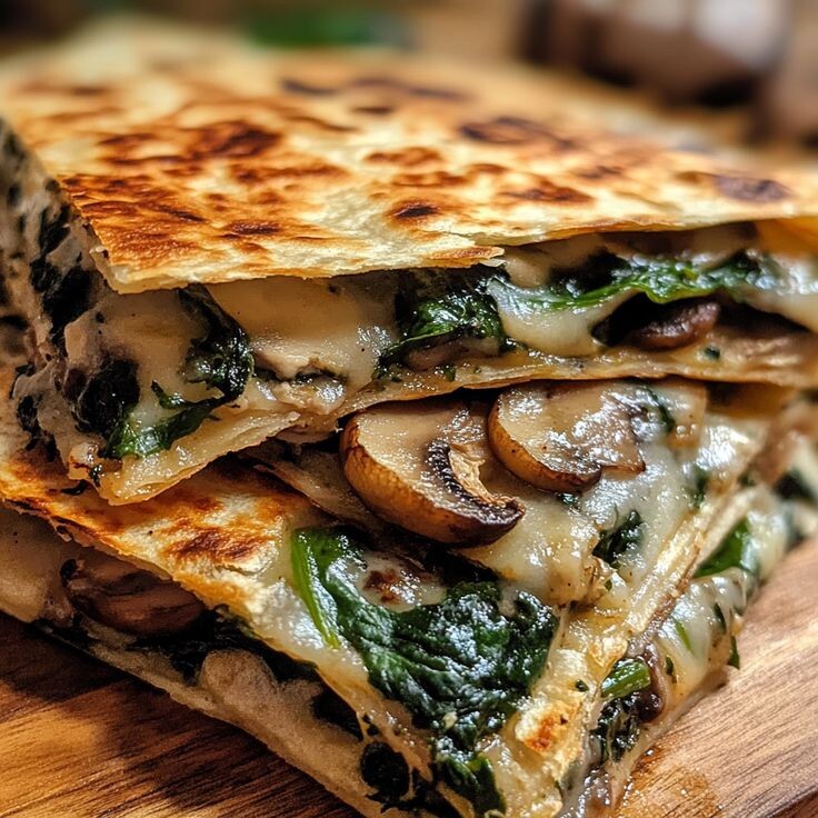 Когда день был длинным, а сил — почти нет, на помощь приходит кесадилья. Это буквально обёртка для всего вкусного, что есть в холодильнике. Но сочетание шпината, грибов и сыра — моя личная классика: тянущийся сыр, чуть землистые грибы, зелёная свежесть шпината и хрустящая корочка сковородки. Готовится за считаные минуты, выглядит аппетитно, естся — с двух рук. Кесадилья — мой «план Б». Готовлю её, когда не хочу думать, считать, искать рецепты. Просто открываю холодильник, нахожу сыр и что-то зелёное, и ужин готов. А главное — это всегда вкусно. Даже если чуть подгорело. Даже если разрезалось криво. Даже если ешь на ходу, прямо из руки. Потому что есть что-то особенное в расплавленном сыре и хрустящей лепёшке.