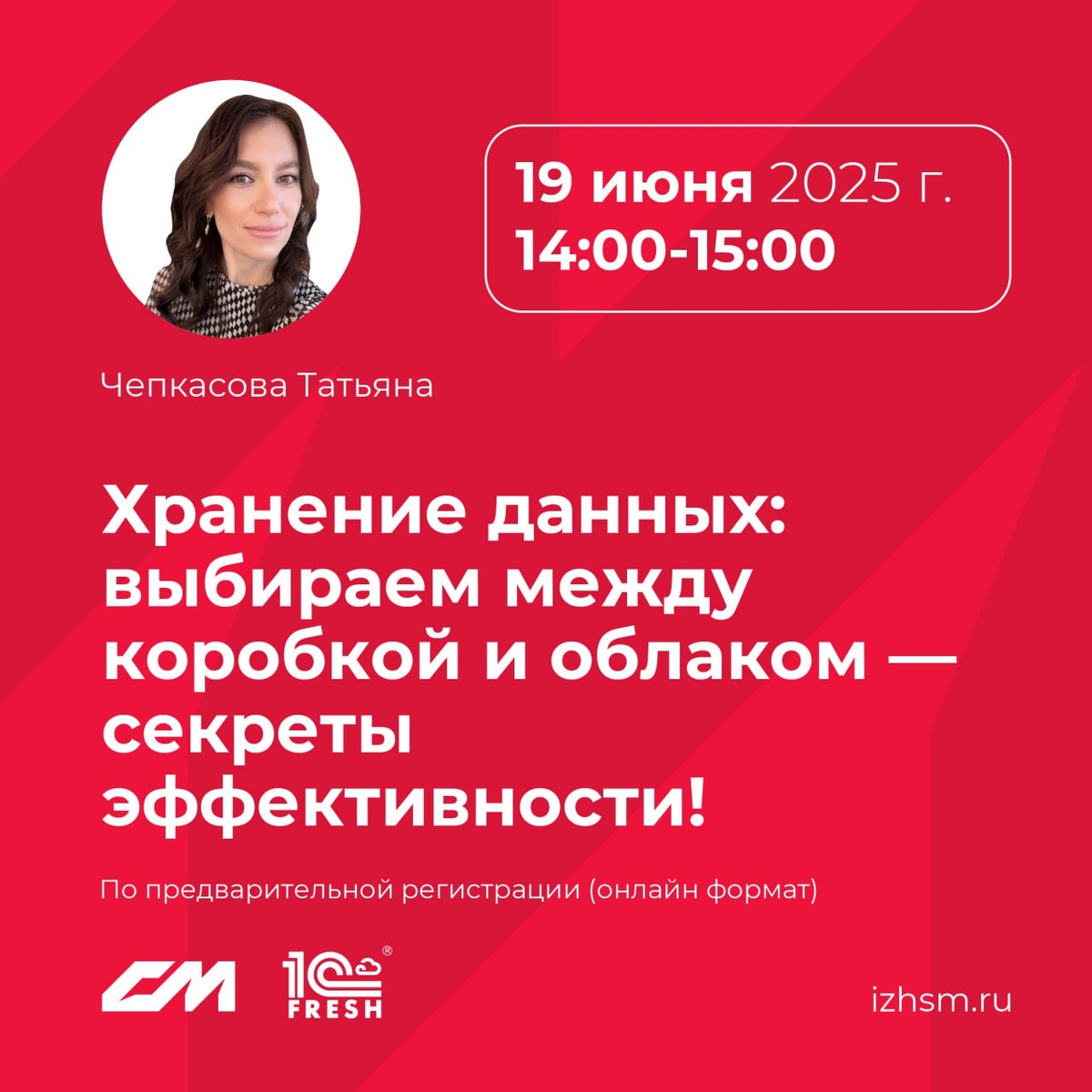 Сломали копья в спорах «Облако vs Коробка»? 19 июня в 14:00 (Ижевску) расставим все точки над i! Директорам: Контроль данными 24/7 без серверов в кладовке! Бухгалтерам: Снимите 100% риска за сохранность данных — спите спокойно «Ваша бухгалтерия — в цифровой крепости!» 1️⃣«Облако небезопасно» Покажем банковский уровень защиты! 2️⃣«Дороже коробки» Докажем экономию на реальных цифрах! 3️⃣«Без интернета — нет работы, или есть? 4️⃣«Не настроишь» Интеграции и доработки доступнее чем думается! Татьяна Чепкасова 13 лет спасает бизнес Удмуртии Отмечена Минэкономики УР Практик, а не теоретик: знает ваши боли изнутри!