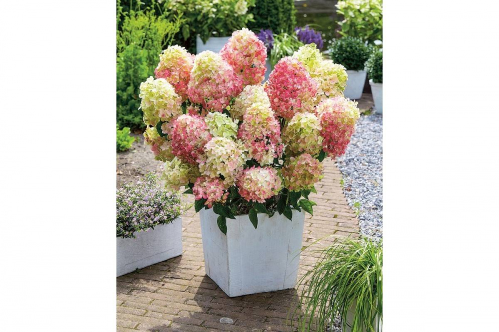 Мечтаете о пышном цветении гортензии, но ограничены в пространстве? Тогда гортензия метельчатая "Бобо" – идеальный выбор! Этот карликовый сорт покоряет своей компактностью, обильным цветением и неприхотливостью. "Бобо" – миниатюрная красота: "Бобо" – это настоящая находка для небольших садов, балконов и террас. Этот карликовый сорт метельчатой гортензии вырастает всего до 65-70 см в высоту и не превышает 60 см в диаметре. Благодаря своим скромным размерам, "Бобо" легко впишется в любой ландшафт и станет ярким акцентом в вашем саду. Обильное и продолжительное цветение: Главное достоинство "Бобо" – это, конечно же, его обильное и продолжительное цветение. Уже в конце июня кустик покрывается множеством ярко-белых цветочков, собранных в крупные, конусовидные соцветия-метелки. Ближе к осени белые лепестки приобретают нежный бледно-розовый оттенок, добавляя растению еще больше очарования. Цветение продолжается до самых заморозков, радуя глаз своей красотой. Преимущества сорта "Бобо": Выращив