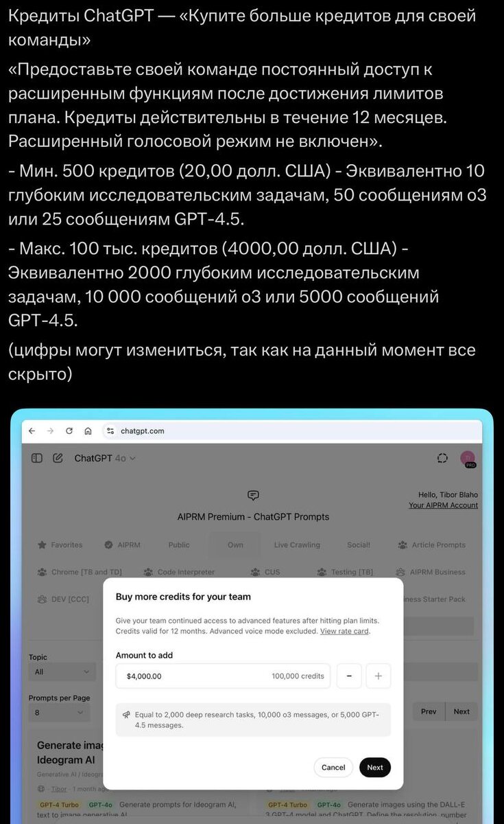 А вот и первые подробности кредитной системы в OpenAI Пока все это еще «скрыто», но уже хоть что-то раскрывается Интересно конечно, что за 20 баксов можно получить 50 запросов в о3 всего Думаю что это еще поправят или не будут перекрывать еще саму подписку, а как расширение лимитов уже текущих Если будет возможность точечно еще и о3 про юзать - я думаю это будет очень полезно, так как функционал его не так часто нужен, как и дипресерч(не на каждый день), а если нужен - то иногда несколько В общем интересно будет посмотреть как это будет в релизе работать