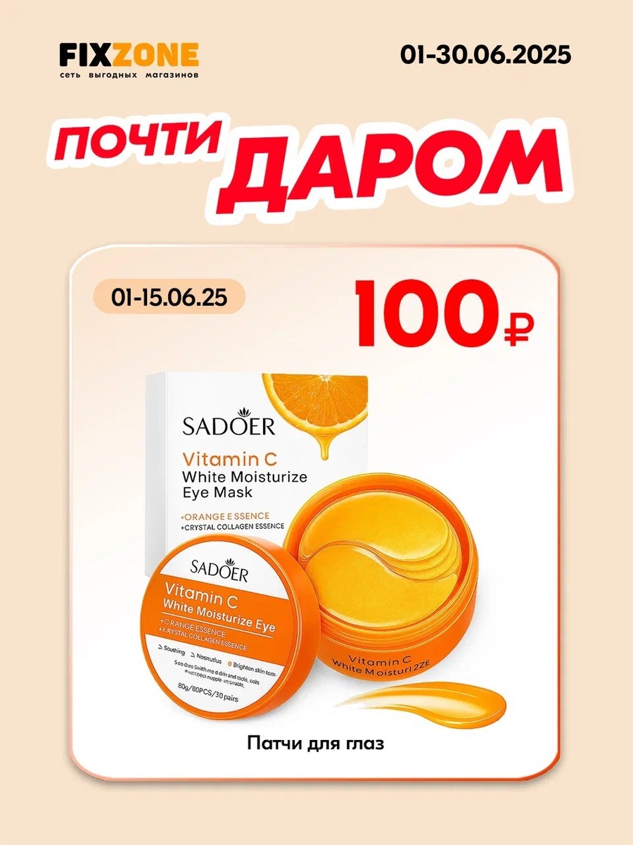 Свежий взгляд за 100₽? 👀 Устали от темных кругов и отёков? Подарите мгновенную свежесть и сияние взгляду. Приходите в FixZone и выбирайте патчи, чтобы каждая утренняя рутина стала лёгким и приятным ритуалом! Акция действует с 1 по 15 июня — поспешите, пока все не раскупили!