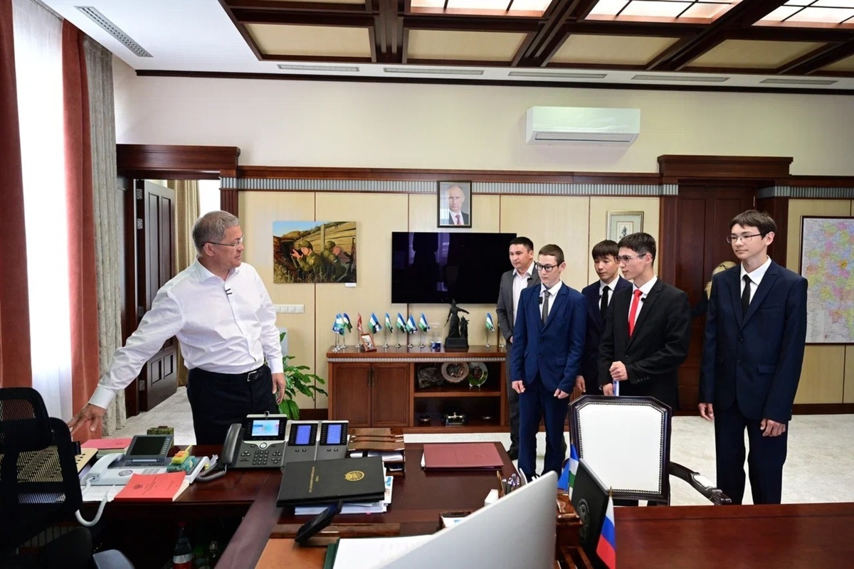 Четверо учащихся 10 класса Стерлитамакского лицея-интерната №2 имени Ленина — Аскар Галимуллин, Алмаз Тагиров, Арслан Ишкильдин и Ильнур Салихкулов — посетили рабочий кабинет Главы республики Радия Хабирова. Инициатива встречи принадлежала самому Аскару, который во время предыдущей беседы с руководителем региона в парке «Патриот» выразил желание посмотреть, где работает руководитель региона. В ходе экскурсии школьники осмотрели кабинет, где проходят важные совещания, и зал оперативных заседаний. Радий Хабиров тепло пообщался с гостями, попросив Алмаза передать привет его отцу, который сейчас участвует в СВО. Глава республики отметил хорошую успеваемость и активную жизненную позицию стерлитамакских лицеистов. Во время встречи также обсудили вопрос отсутствия в лицее полноценного спортзала. Хабиров пообещал лично ознакомиться с ситуацией во время следующего визита в Стерлитамак. «Пройдет буквально несколько лет и плечи, как говорится, расправятся, и уже осознанность многих вещей появитс