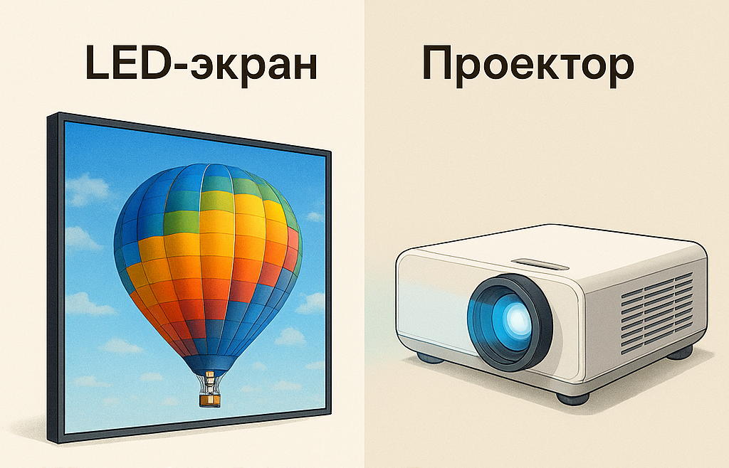 Вывод: LED-экраны идеально подходят для длительного и интенсивного использования. Проекторы лучше для временных или бюджетных решений.