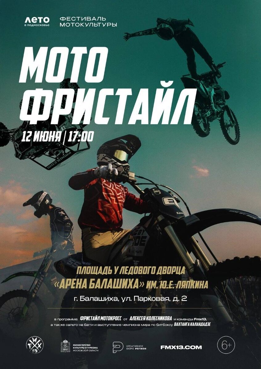 Зрелищное мотошоу пройдет в Балашихе 🏍12 июня на площади у Ледового дворца «Арена Балашиха» профессионалы продемонстрируют сложнейшие трюки, фигуры и акробатические элементы в воздухе. Гостей события ожидает уникальная впечатляющая программа. 🏆 Для зрителей будет показано уличное шоу команды мотофристайла FMX13. В программе мероприятия подготовлен фристайл-мотокросс от Алексея Колесникова. Алексей является основоположником мотофристайла в России, победителем двух этапов чемпионат мира по FMX 2014 года и первым отечественным спортсменом, кто смог выполнить сальто назад. Также Алексей Колесников сделал прыжок на мотоцикле через КамАЗ весом 9 тонн, когда машина находилась в движении. ➖В рамках выступления свои навыки покажут и другие члены команды FMX13. Помимо всего перечисленного, гостей шоу ждёт сальто на багги. 🎤Выступление будет сопровождать чемпион мира по битбоксу Вахтанг Каландадзе. Во время выступлений он использует возможности своего голоса для создания необходимых эффект