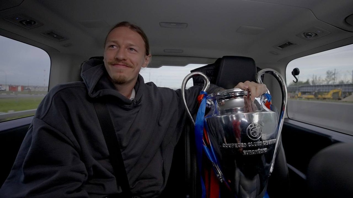 Молодец, пристегнулся. А вот кубок пристёгивать не стал. Тоже правильно. Во-первых, по ПДД этого и не нужно, а во-вторых, это не настоящий Кубок чемпионов, а копия. РФС подсуетился и сделал дубликат к приезду в Москву вратаря сборной России по футболу Матвея Сафонова, который в эти выходные в составе ПСЖ выиграл финал Лиги Чемпионов. Это была минутка автомобильно-спортивного просвещения для тех, кто не в теме.