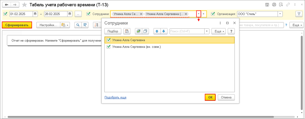 Как заполнить табель по внутреннему совместителю в "1С:ЗУП 8" (ред. 3)?