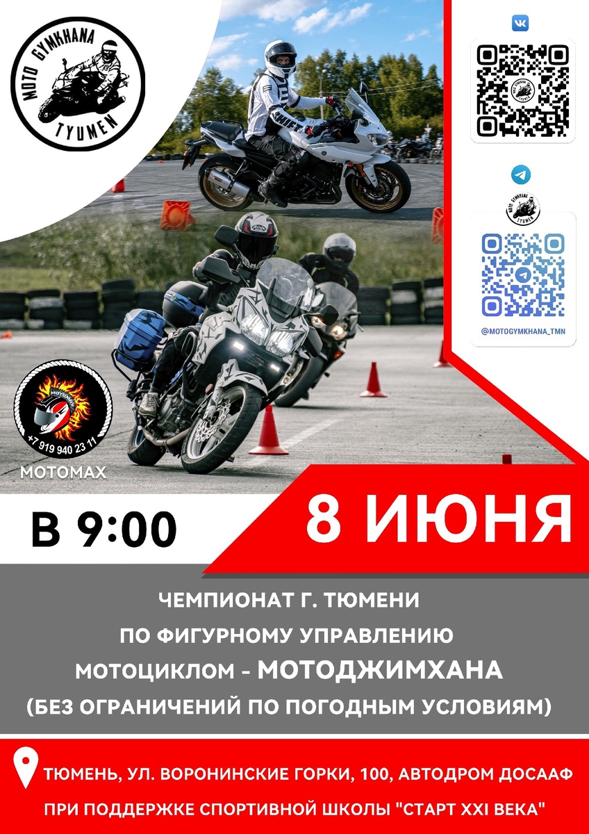 Команда Мотоджимхана Тюмень проводит чемпионат города Тюмени по фигурному управлению мотоциклом (мотоджимхана) при поддержке спортивной школы "Старт XXl века" и мотоцентра "Мотомакс". Классы участников: 1 новички (кто вообще не знает, что это такое)🆕 2 любители (Кто катает не уверенно)🙈 3 бывалые (сорвиголова джимханы) 🤯 4 круизеры✨ От вас: 1 технически исправный мотоцикл🏍🏍 2 спортивная страховка оформляется заранее стоимость 500₽ Марина +79526772143📄 3 стратовый взнос 2000₽ (наличка)💸 4 Хорошее настроение😁 5 заявка на участие📜🤝 От нас: 1 интересная трасса интуитивно понятная🏎🛣 2 профессиональная фото/видео съемка📷📸 3 Кубки/грамоты/медали 🏆🏆🏆🥇🥈🥉 4 ценные призы 💰💵💵 5 беспристрастное судейство🧑⚖️👨⚖️ 6 лазерная телеметрия 💥 7 позитивное настроение 😌 Два проезда трассы лучшее время в зачет⏳️ Почетные места для награждения 1️⃣;2️⃣;3️⃣; в каждом классе, по итогам лучшего времени с учетом штрафных баллов. Для уч Показать полностью... Motorcycle •[ЕКБ] МОТО• #мо