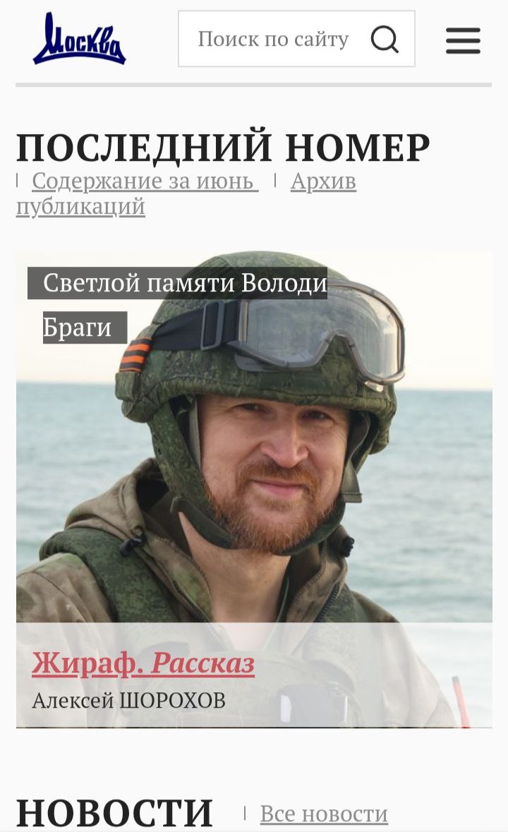 В журнале "Москва" вышел военный рассказ Алексея Шорохова "Жираф