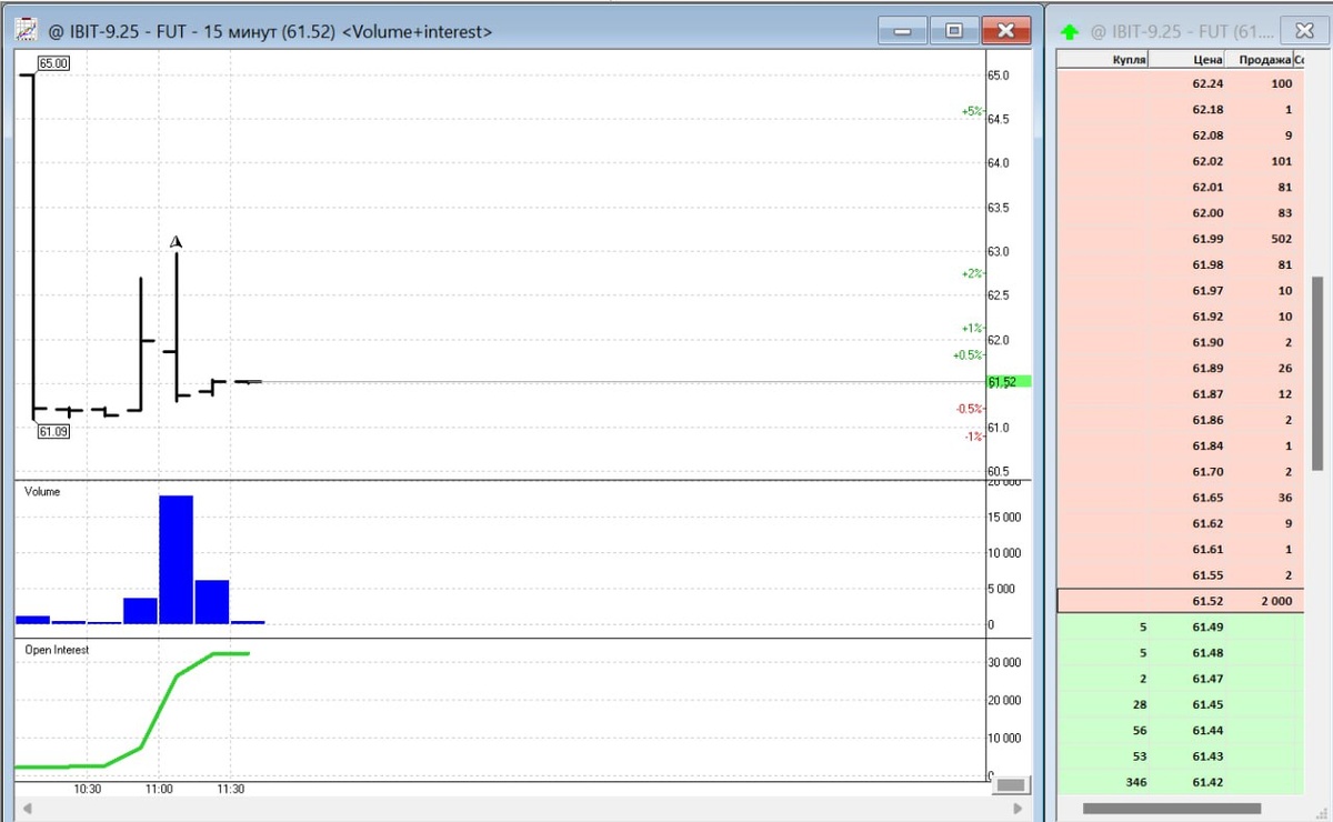Пульс Биткоина на Московской Бирже. Пока только в виде фьючерса, но тем не менее 👍