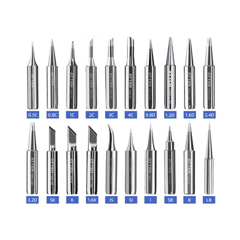 Паяльное жало — это не просто расходник, а критически важная часть системы передачи тепла. Правильный выбор формы и размера жала позволяет сократить время пайки, повысить качество соединения, продлить срок службы нагревательного элемента и минимизировать риск повреждения компонентов. Для паяльных станций Atten с интегрированными нагревателями жало подбирается в соответствии с задачей, видом элементов и общими требованиями к производству. На что влияет форма и размер жала Главный принцип при выборе жала — чем больше жало (по массе и площади контакта), тем эффективнее оно работает. Это объясняется рядом факторов: Как температура влияет на срок службы Нормальная рабочая температура паяльного жала — около 350 °C. Превышение этого значения значительно ускоряет износ: Покрытие жал Atten выполнено из плотного сплава железа с высокой устойчивостью к коррозии и равномерной кристаллической структурой. Это обеспечивает надёжное смачивание припоем, устойчивость к активным флюсам и стабильную работ