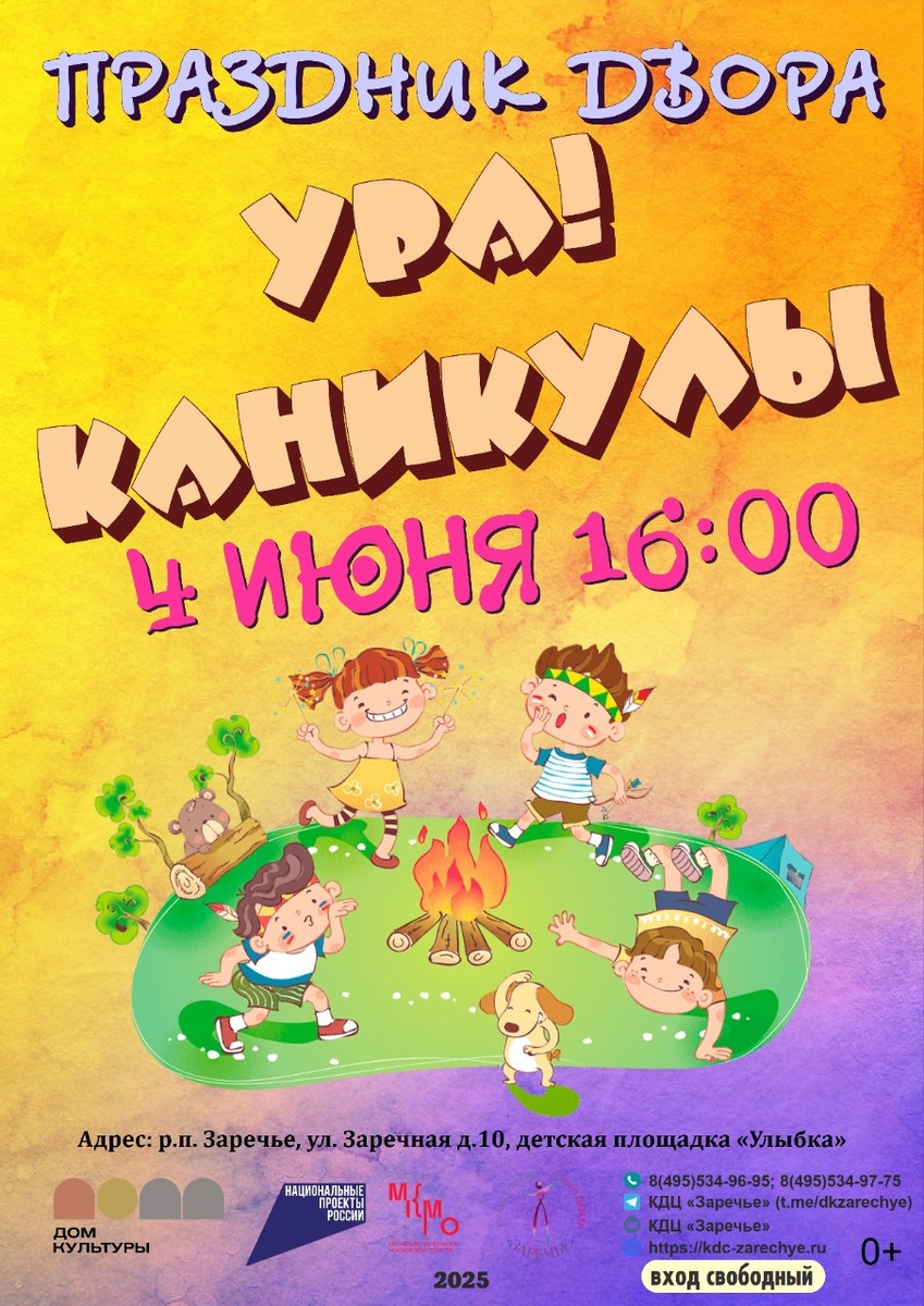 Сегодня в 16:00 ждем всех на детской площадке "Улыбка" на Празднике двора "УРА, КАНИКУЛЫ!" 🤾🏻🌞 В программе игры, танцы и увлекательные эстафеты! До скорой встречи! #кдцзаречье #культура_одинцовскийгородскойокруг #культуравзаречье #культура #ОГО #праздникдвора
