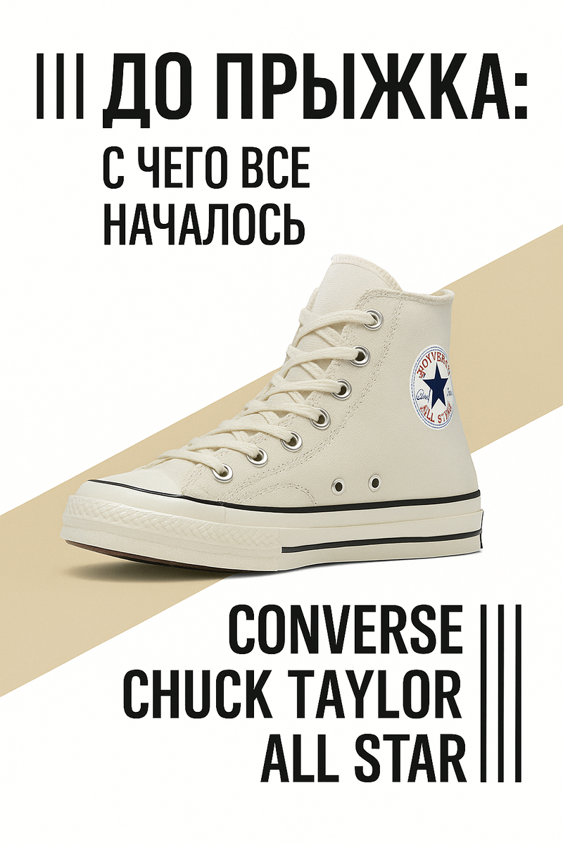 До логотипов, технологий и миллионных контрактов баскетбольная обувь была простой. Даже слишком простой. Но именно в этих формах без излишеств рождалась культура, которая навсегда изменила спорт, стиль и улицу. Когда в 1891 году Джеймс Нейсмит придумал баскетбол, никто и подумать не мог, что у этой игры будет свой дресс-код. На заре XX века игроки выходили на деревянный паркет в обычных ботинках — часто на кожаной подошве. Они были тяжёлыми, неудобными и опасными. Всё изменилось в 1917 году, когда Converse выпустила All-Star. Впервые игроки получили кеды, созданные именно для баскетбола. Высокий профиль, резиновая подошва, текстильный верх — революция по меркам того времени. А в 1923 году в игру вошёл Чак Тейлор — бывший игрок и настоящий амбассадор Converse. Его имя на язычке сделало модель бессмертной. С этого момента Chuck Taylor All-Star стали синонимом баскетбольной обуви. С 1920-х по конец 1960-х Converse практически безраздельно властвовали на паркете.
