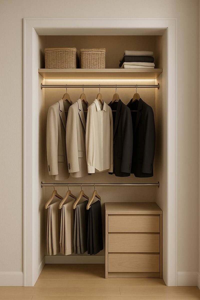 📖 МДЧ Журнал / Выпуск №2 🗂 Тема: Гардеробная — это не роскошь, а порядок в квадратных метрах 👋 Привет! Сегодня — про то, что часто кажется «слишком дорого» или «не для моей квартиры». На самом деле, гардеробная — это не про метры, а про подход. Даже в 1,5 м² можно сделать пространство, которое каждый день будет экономить тебе нервы и время. ❓ Что такое гардеробная на самом деле? Это не обязательно отдельная комната. Это может быть: • ниша от 120 см глубиной • бывшая кладовка • часть коридора • или просто зона за перегородкой 📌 Главное — не размер, а логика хранения. 🛠️ Как вписать гардеробную в обычную квартиру: ✅ Использовать высоту до потолка ✅ Комбинировать открытые и закрытые секции ✅ Добавить мягкую подсветку ✅ Оставить минимум 60 см для движения ✅ Зеркало + свет = визуальный простор 📋 Чек-лист для будущей гардеробной: • Вешало для длинной одежды (150–170 см) • Вешало для короткой (90–100 см) • Ящики для белья • Полки для сезонных вещей • Корзины или боксы для мелоче