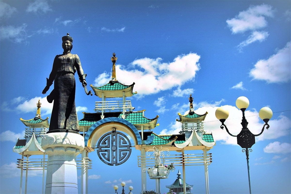 Скульптура «Бальжин-хатан» на въезде в поселок Агинское