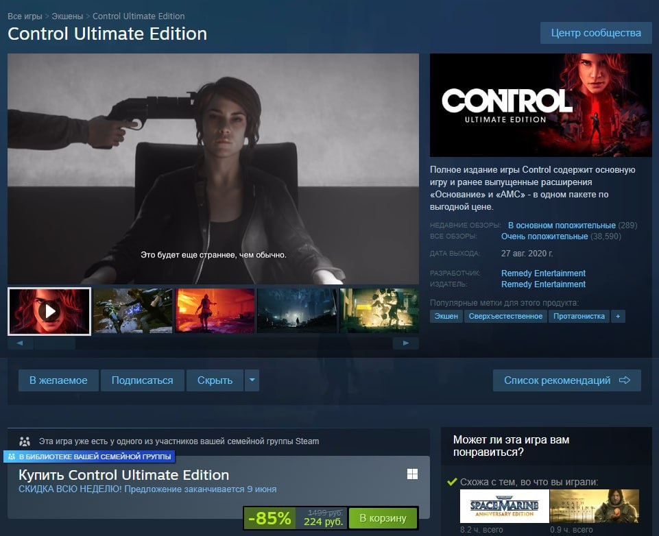 Control Ultimate Edition получил жирную скидку в Steam один из лучших боевиков от создателей Max Payne отдают всего за 224 рубля.
