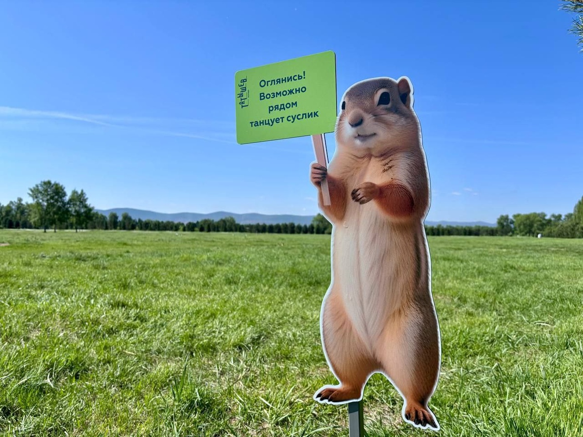 "Оглянись! Возможно рядом танцует суслик"🐹 Такие таблички появились на острове Татышев! На поляне сусликов проводится очень много мероприятий из-за этого страдают хозяева этого места! Они уже "кричат" о том чтобы люди не забывали, что на полянке могут находиться не только они, но и семья сусликов!🫶 👍 - Милашки! ОТПРАВИТЬ НОВОСТЬ В КАНАЛ