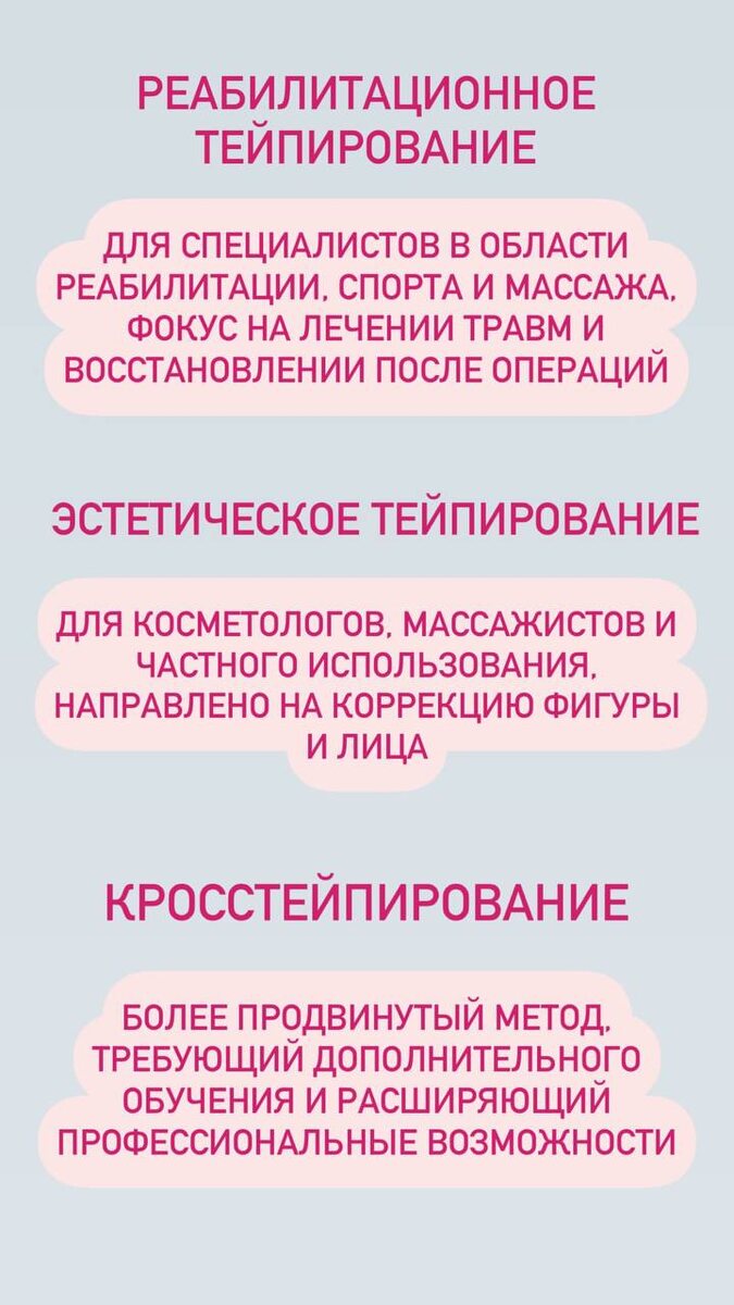 На нашем сайте вы всегда найдете подходящий курс обучения. А уже завтра 5.06 в 19:00 по МСК состоится бесплатный мастер-класс «Знакомство с кинезиотейпированием»! Вы узнаете⬇️ ❗️ Базовые и необходимые знания методики тейпирования перед использованием в своей практике. ❗️ Боль в области большого пальца руки. Как помочь себе с помощью тейпов? ❗️ Боль в области тазобедренного сустава. Причины, как понять какую аппликацию подобрать? На мастер-классе вас ждут самые лучшие предложения на наше обучение. Чтобы попасть на мастер-класс и получить запись на 72 часа, регистрируйтесь по ссылке Для тех кто в Москве мастер-класс можно посетить очно, записывайтесь по ссылке выше.