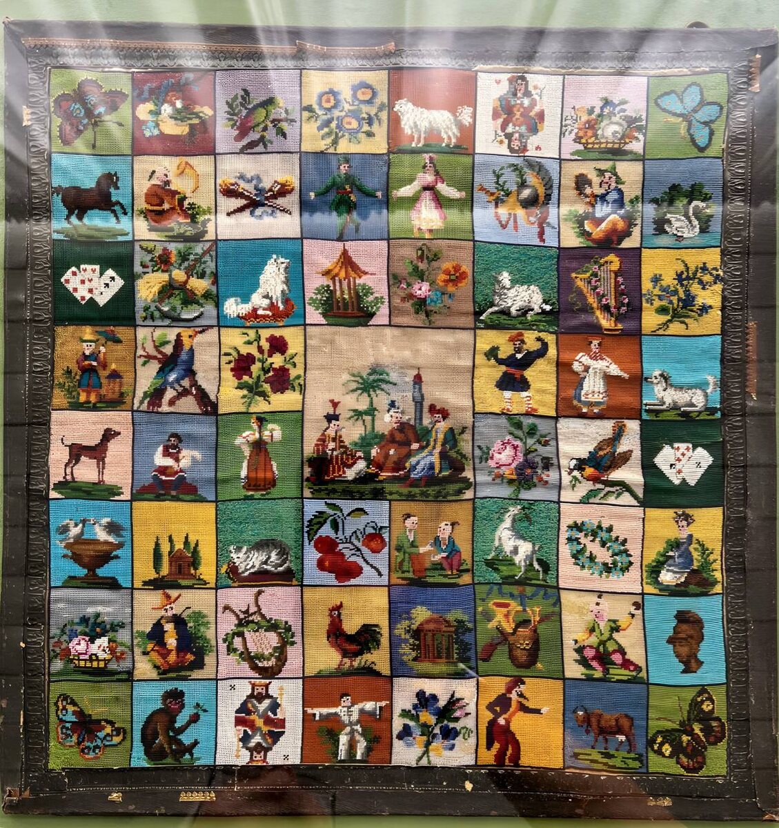 Вот такая вышивка для лицевой стороны подушки. 1820-30-е годы. Называется – кводлибет. Что означает: «что угодно» (латынь).