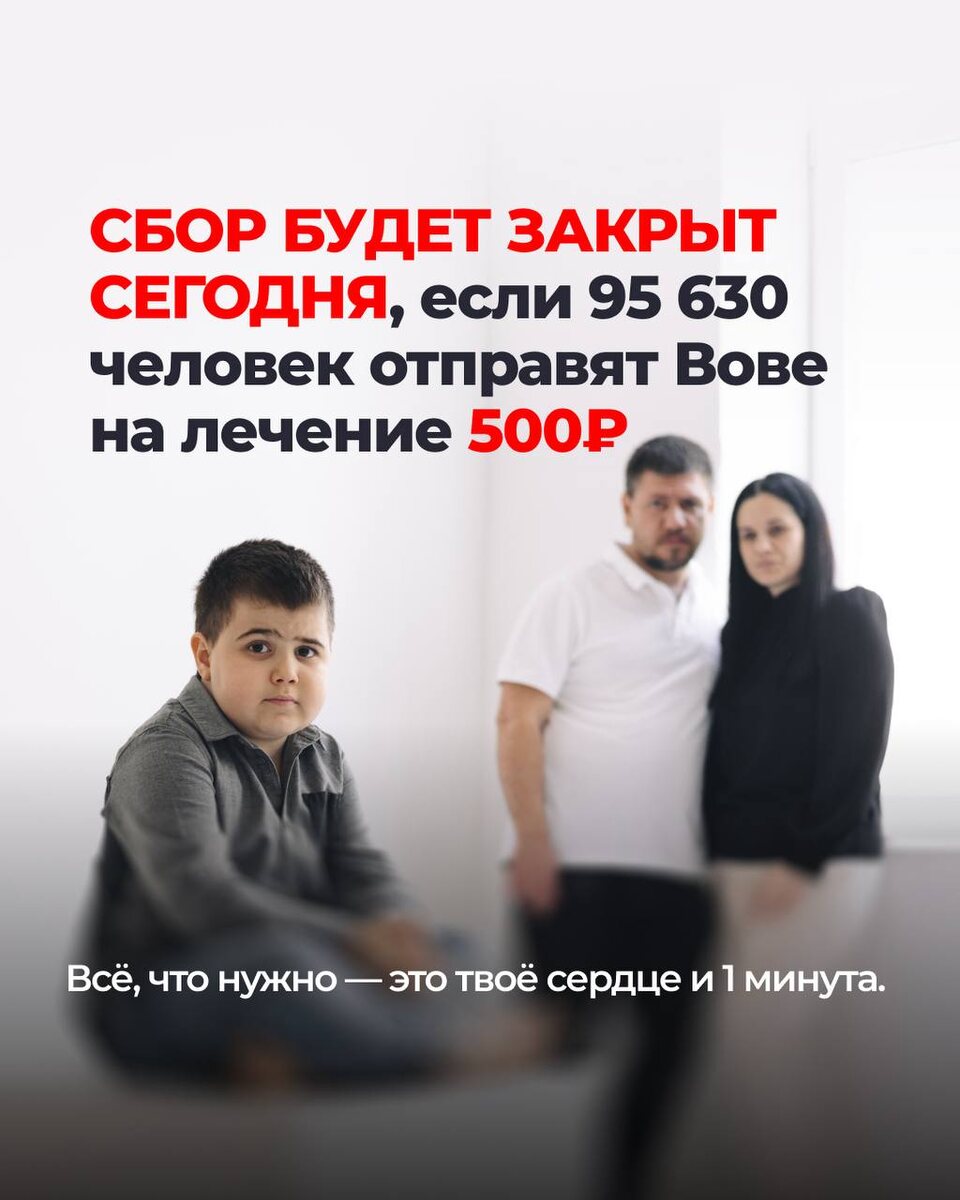 Нам нужна максимальная огласка, чтобы спасти Вову. Прошу каждого из Вас.🙏 Возьмите любое видео с нашей страницы и сделайте репост. Только вместе мы сможем победить в этой борьбе! Осталось собрать: 47 814 547руб. Это 18,25% от всей суммы 👥 Всего 95 630 человек по 500 ₽ — и сбор будет закрыт! 🚨 Или любая посильная сумма — важен каждый перевод! Вова Соловьёв, 8 лет Диагноз: Миодистрофия Дюшенна Мы боремся за его жизнь и верим — у нас ещё есть шанс! Все документы, фонды, способы помощи, переводы с зарубежных карт — по ссылке в описании профиля @savevova2024. Реквизиты для помощи: Перевод по номеру: +7 (918) 499-99-81 Заира Масхудовна С. (мама) СБЕР В комментарии к платежу: «Вове на лечение» Можно помочь через: 🔵 Благотворительный фонд имени Петра Минеева 🔵 Благотворительный фонд «Дом ИНСИТИ»