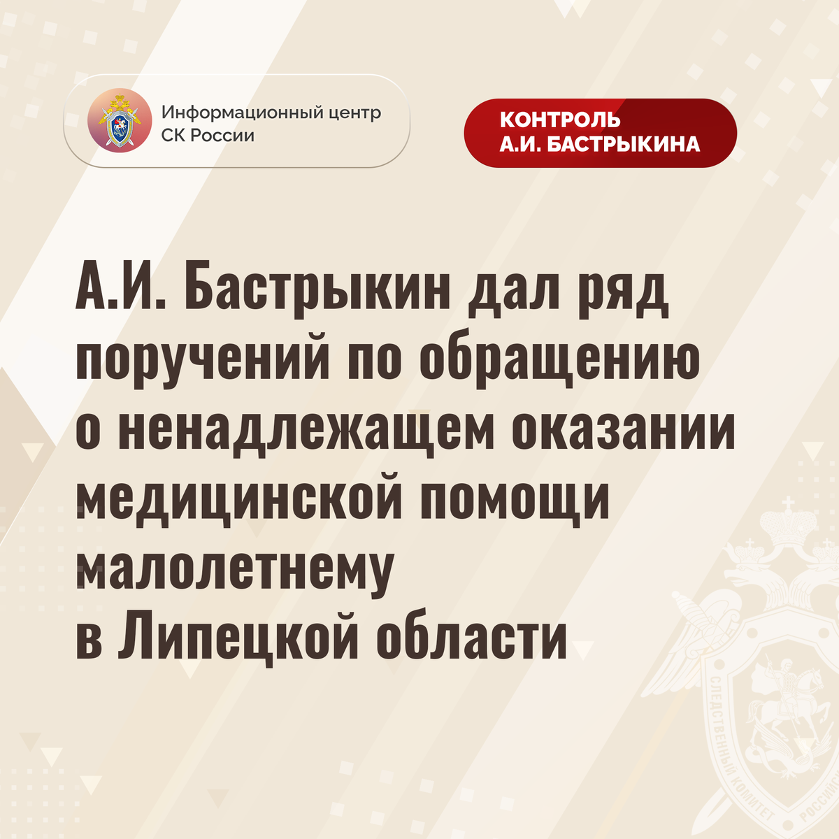 А.И. Бастрыкин дал ряд поручений по обращению о ненадлежащем оказании медицинской помощи малолетнему в Липецкой области