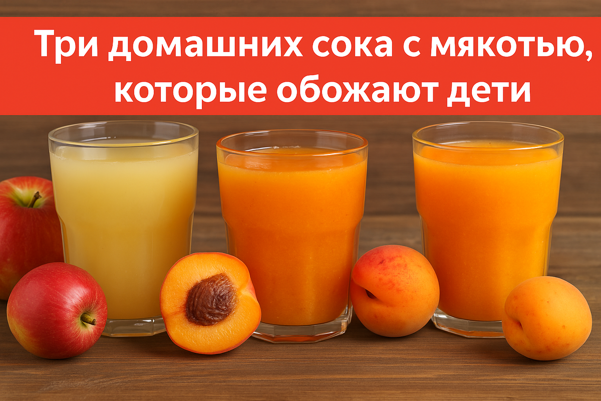 Знаешь, когда дети просят «ещё стаканчик» — это ли не лучший знак, что сок получился удачным? 😊 Делюсь своими проверенными рецептами яблочного, абрикосового и персикового сока с мякотью — вкусные, насыщенные, без лишней воды. Такие соки не просто вкусны, они будто возвращают в детство! 💛 Вот честно: стоит только яблоки пойти собирать — я уже знаю, что первая партия уйдёт в сок. Густой, ароматный, чуть сладковатый — и никакой магазинный не сравнится. Что понадобится: Как делаю: Персики — это такой вкус, который никогда не надоедает. Даже переспевшие персики тут идут в ход. Аромат стоит такой, что даже муж заходит на кухню и говорит: «Опять ты варишь что-то вкусное?» Ингредиенты: Готовим так: Как улучшить: Добавьте чуть-чуть мяты при варке — получится освежающий «персико-мятный» вкус, идеально для жары! Абрикосы — они капризные, быстро темнеют. Но если их поймать в нужный момент — получается просто огонь. У нас на даче абрикосы с одного дерева уходят только на этот сок — дети обо