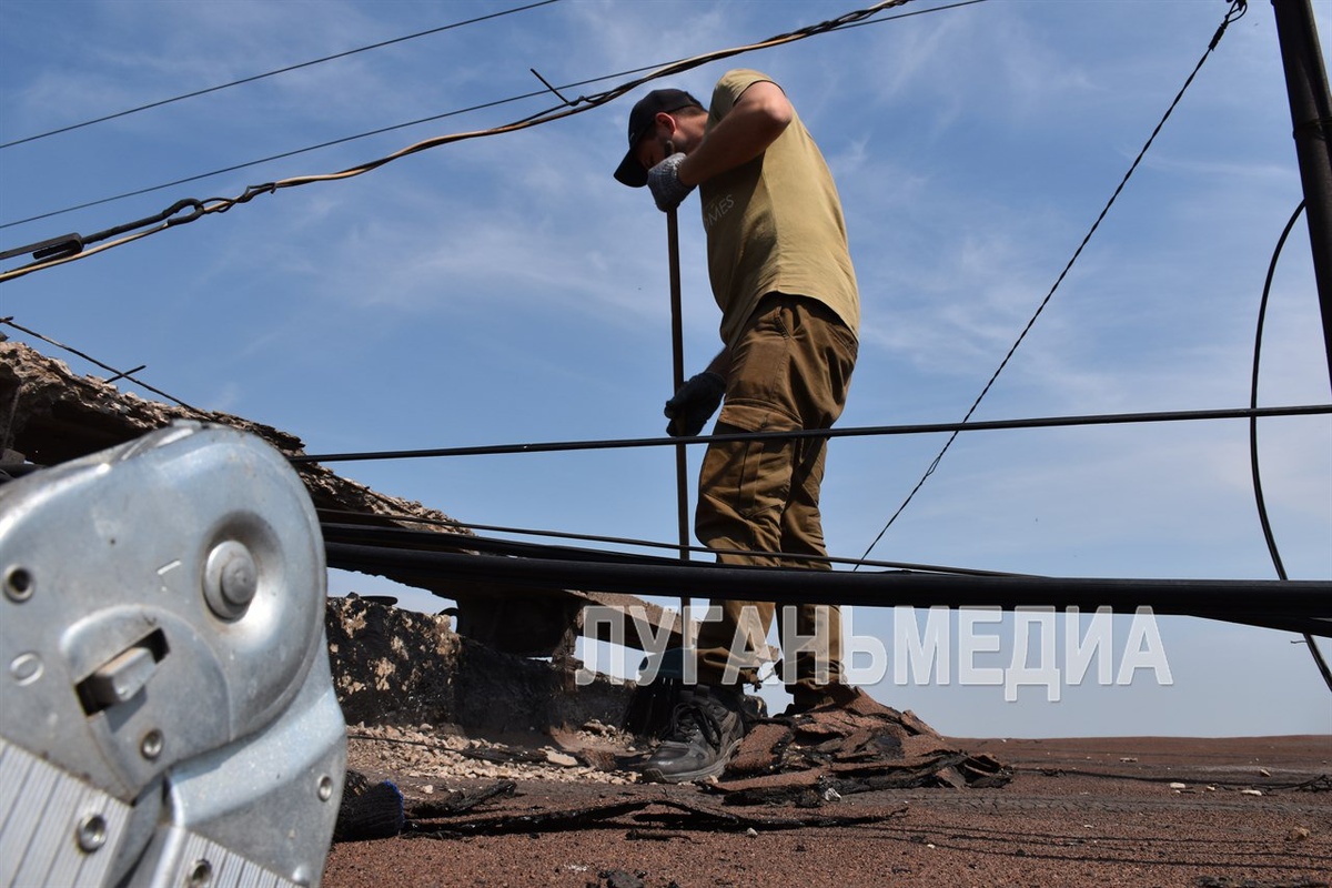 💬– Приступили к работе два дня назад, – поделился кровельщик Александр. – Подготавливаем поверхность под замену кровли и укладку акваизола, выполняем работы на примыканиях. Если погода позволит, все выполним в срок.
