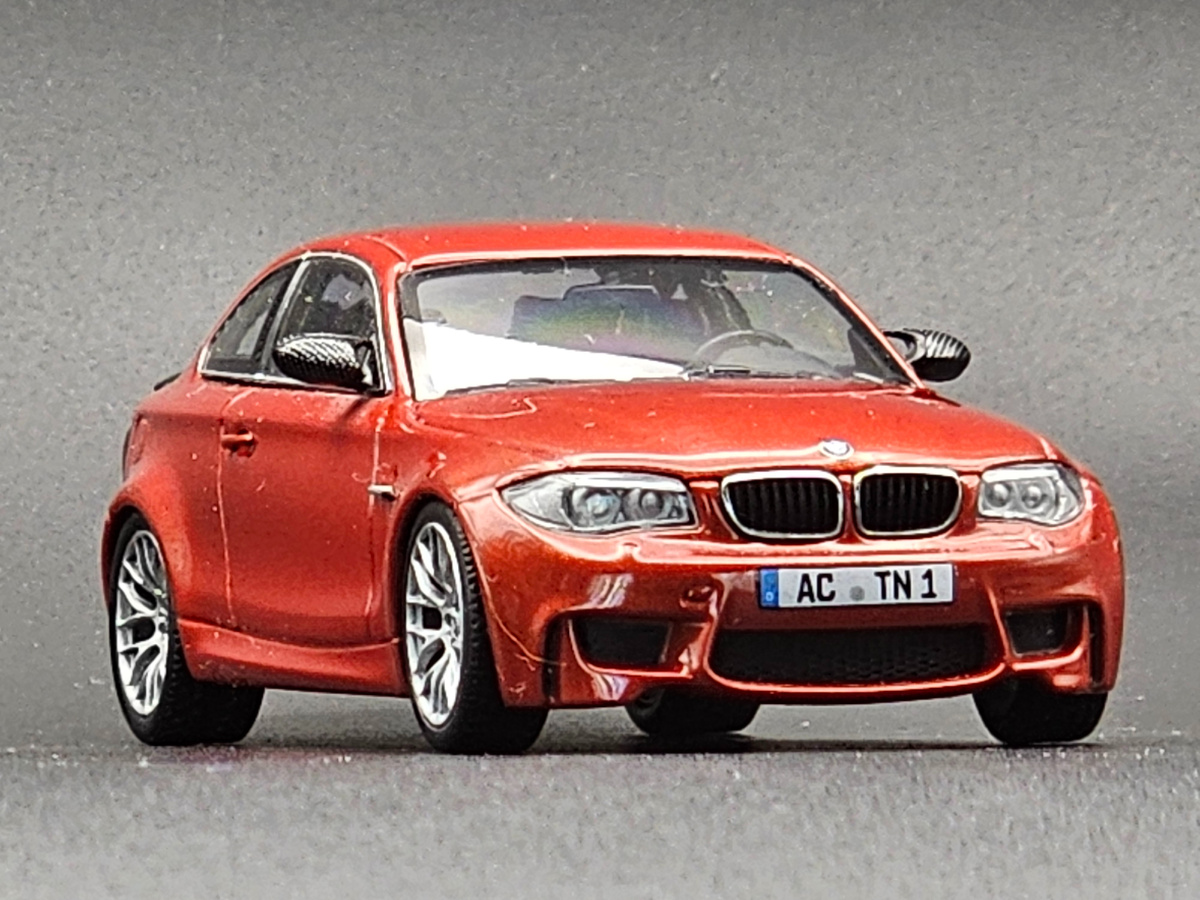 А теперь коротко о модели BMW 1ER M Coupe (2011) Е82, orange metallic, производитель компания Minichamps, масштаб 1/43, материал Die Cast, открывающихся элементов нет. Каталожный номер 410020020. Тираж 1008 экземпляров. Дата выхода модели 2011 год. Отличительной особенностью данной модели является наличие карбонового спойлера и карбоновых накладок на зеркала заднего вида. Очень качественная и приятная модель.