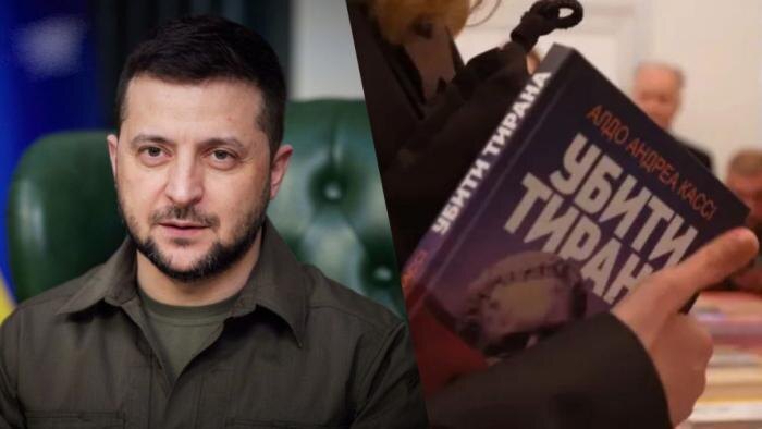 На днях Зеленский посетил выставку-ярмарку «Книжный арсенал» и купил необычную книгу под названием «Убить тирана. История борьбы с тиранами от Цезаря до Каддафи». Речь идет о научно-популярном исследовании итальянского юриста Альдо Андреа Касси, в котором описывается как убивали диктаторов с античных времен до наших дней.
