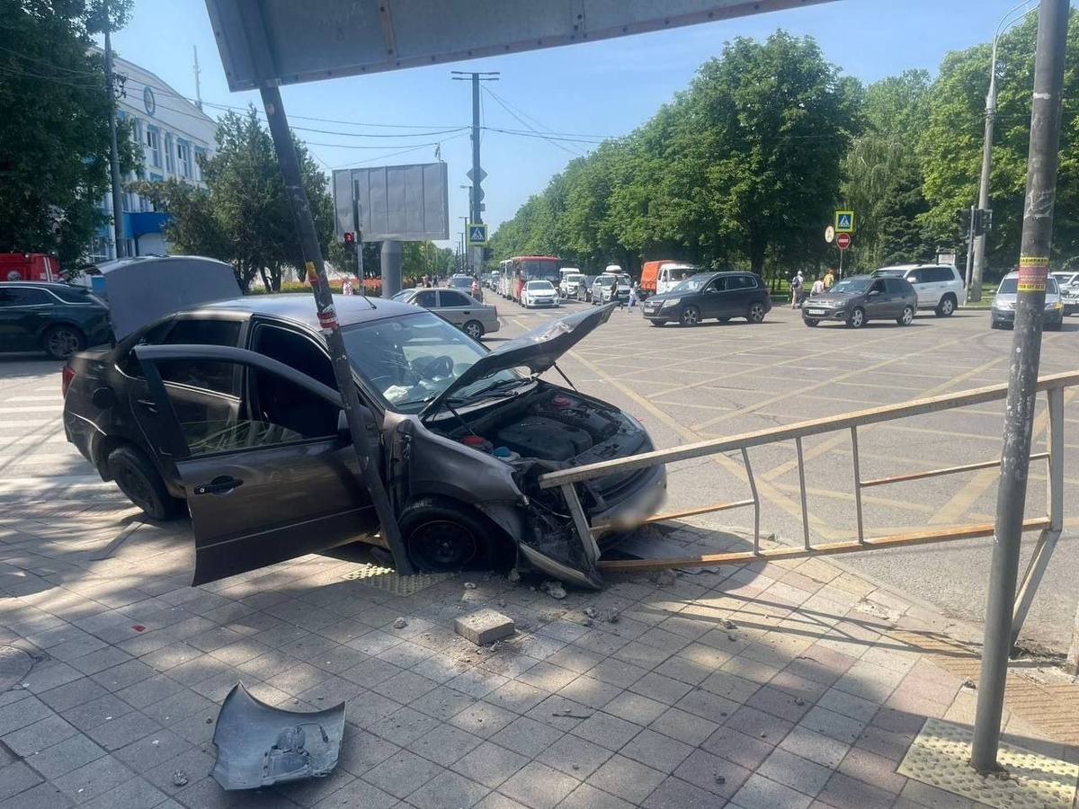 В результате аварии «Лада» изменила траекторию движения, наехала на бордюр, а затем на металлическое ограждение.
