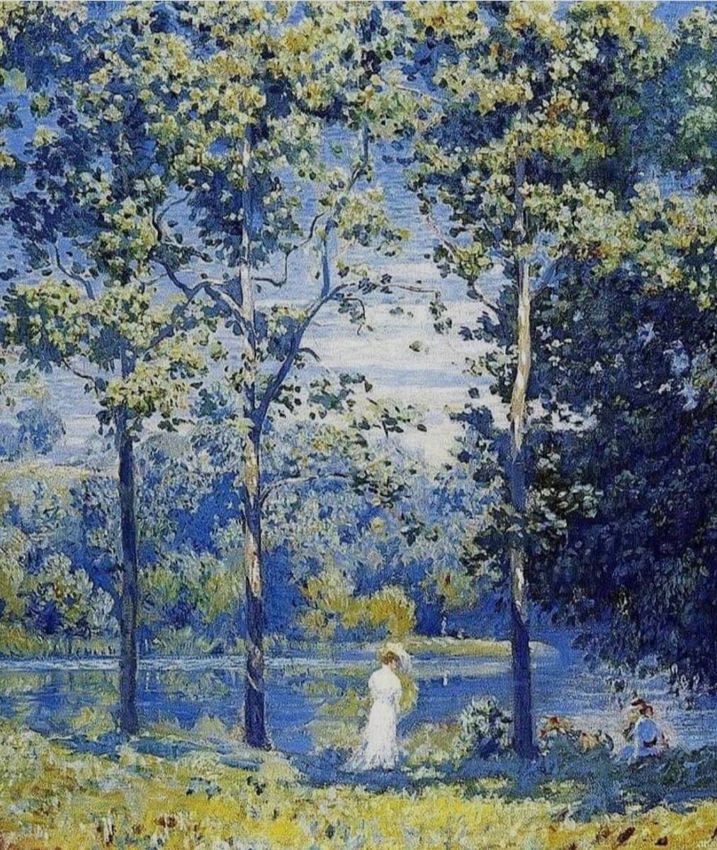 Я лишь жду, пока лишнее уйдёт само Американский импрессионист Даниэль Гарбер (1880–1958) прославился светлыми, почти воздушными пейзажами Пенсильвании. Его живопись требовала переплетений листвы, колебаний воздуха, тонкой игры отражений. Он мог ждать нужного света неделями. На многих полотнах — жена Мэри или дочь Танис. Но это не портреты в привычном смысле. Они — часть пейзажа. Не поза, а дыхание дня. Кажется он писал только лето