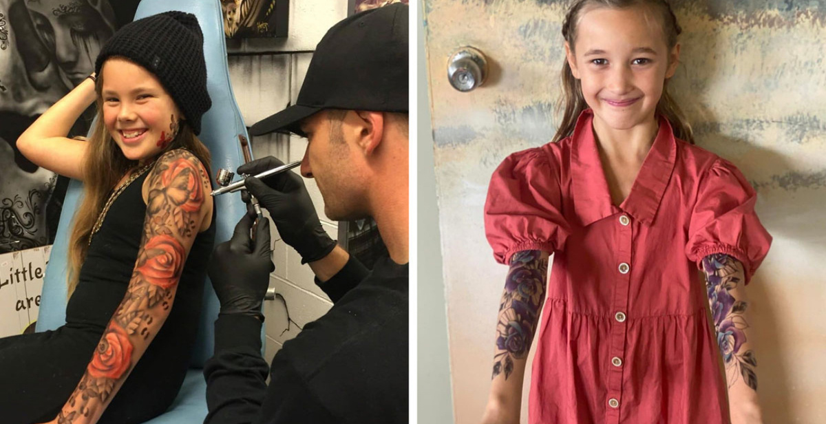 Помните, как некоторые из вас чувствовали себя такими крутыми, наклеивая на руки и ноги переводные татуировки из жвачек? Даже если жвачка была не очень вкусной, главное — крутые картинки на ней. С годами дети не меняются. Интересно посмотреть, что современный ребёнок будет делать с временной татуировкой. Кажется, и он будет в седьмом небе от счастья! В этом вопросе художник Бенджамин Ллойд пошёл ещё дальше — он создаёт детям «настоящие» татуировки. Подождите возмущаться – он делает их аэрографом. Посмотрите и уже потом выскажите свое мнение в комментариях – выглядят ли они натурально? Несмотря на это, одна из первых фотографий в соцсети с татуированным ребенком набрала почти 500 тысяч лайков. Само собой, он позаботился о полной безопасности своих юных клиентов! Но Бенджамин говорит, что для него нет ничего более ценного, чем радость детей, когда они видят результат его работы. Это мгновенно делает их более уверенными и крутыми. Что в этом плохого? Так он делала сво