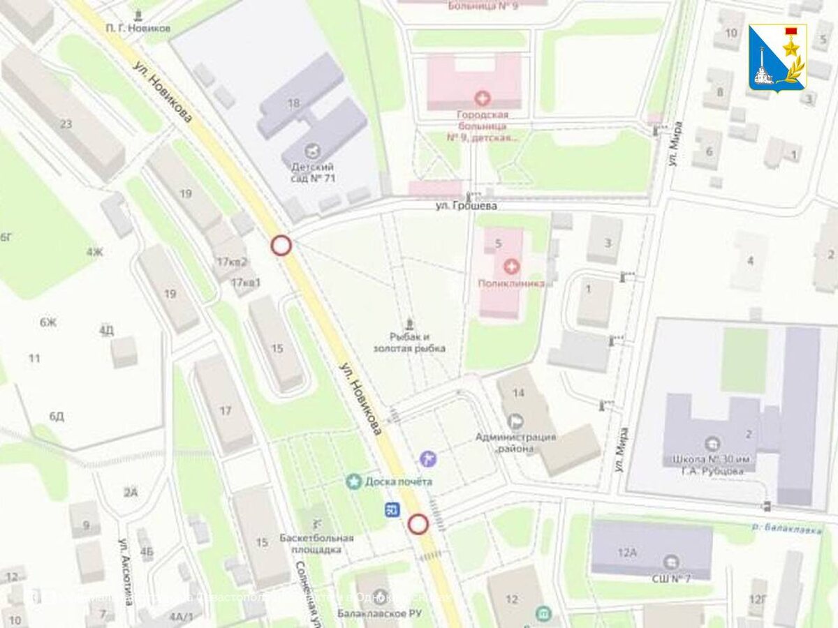 Ограничение движения В Балаклаве 7 июня с 08:50 до 09:40 ограничат движение транспорта на улице Новикова в районе Доски Почета. Движение ограничат между домами № 11 и № 15 — от пересечения с улицей Грошева и с улицей Мира. Это необходимо для проведения праздничных мероприятий, посвященных празднованию Дня Балаклавского Муниципального округа. Просим учитывать данную информацию при планировании своего маршрута. Правительство Севастополя