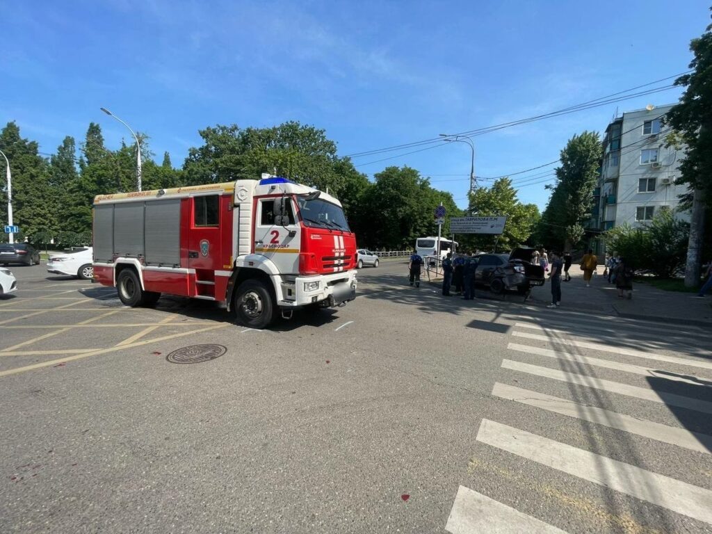 В центре Краснодара пожарная машина столкнулась с легковым автомобилем. Это произошло 4 июня около 9:20 на пересечении улиц Гаврилова и Красной. Пожарная машина двигалась с включенными спецсигналами по ул. Гаврилова в сторону ул. Коммунаров, а 25-летний водитель Lada ехал по ул. Красной в сторону ул. Офицерской. После столкновения легковой автомобиль отлетел в сторону и врезался в металлическое ограждение. Водителю оказали медицинскую помощь, его жизни и здоровью ничего не угрожает. По факту ДТП проводится административное расследование, — сообщили в УМВД России по Краснодару.