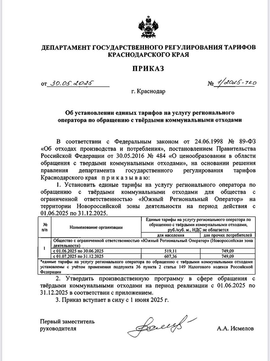Новый регоператор согласовал тариф за вывоз мусора, с 01.07.25 он возрастет на 88,25 руб для Новороссийской зоны