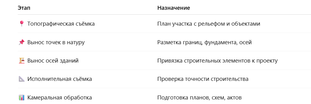 Любой проект — от частного дома до многоэтажного комплекса — начинается с точных измерений. Геодезические работы — это первый и обязательный шаг, обеспечивающий точность, безопасность и юридическую чистоту строительства. В этой статье разберём, как проводится геодезия “под ключ”: от заявки до акта, какие этапы включает, сколько стоит, и почему так важно доверить процесс профессионалам. Геодезические работы — это комплекс инженерных измерений на местности, выполняемых для: 📍 Все действия выполняются инженером-геодезистом с применением профессионального оборудования (тахеометры, GNSS RTK-системы). Инженер-геодезист выезжает на участок с оборудованием и: После полевых работ начинается «офисная часть»: Вы получаете полный пакет документов, который можно использовать: 💡 Совет: при заказе полного комплекса экономия до 25% по сравнению с отдельными услугами. 📊 По статистике Росреестра, в 2024 году до 38% отказов по кадастровым делам были связаны с ошибками в геодезии. 🎯 Хотите узнать сто