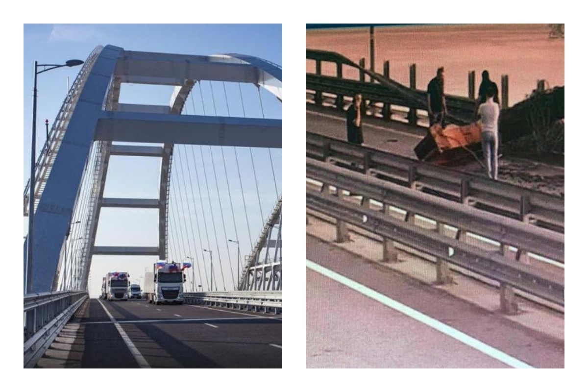 Меж тем, удар, действительно, имел место, он был зафиксирован, но то, что в результате этого мост оказался в весьма удручающем состоянии, маловероятно. Об этом пишут многие военные эксперты и специализированные телеграм-каналы. Так, военблогер Сергей Колясников усомнился, что взрыв «тянет» на тонну тротила. По его словам, произошедшее больше похоже на удар подводного дрона по боновому ограждению.