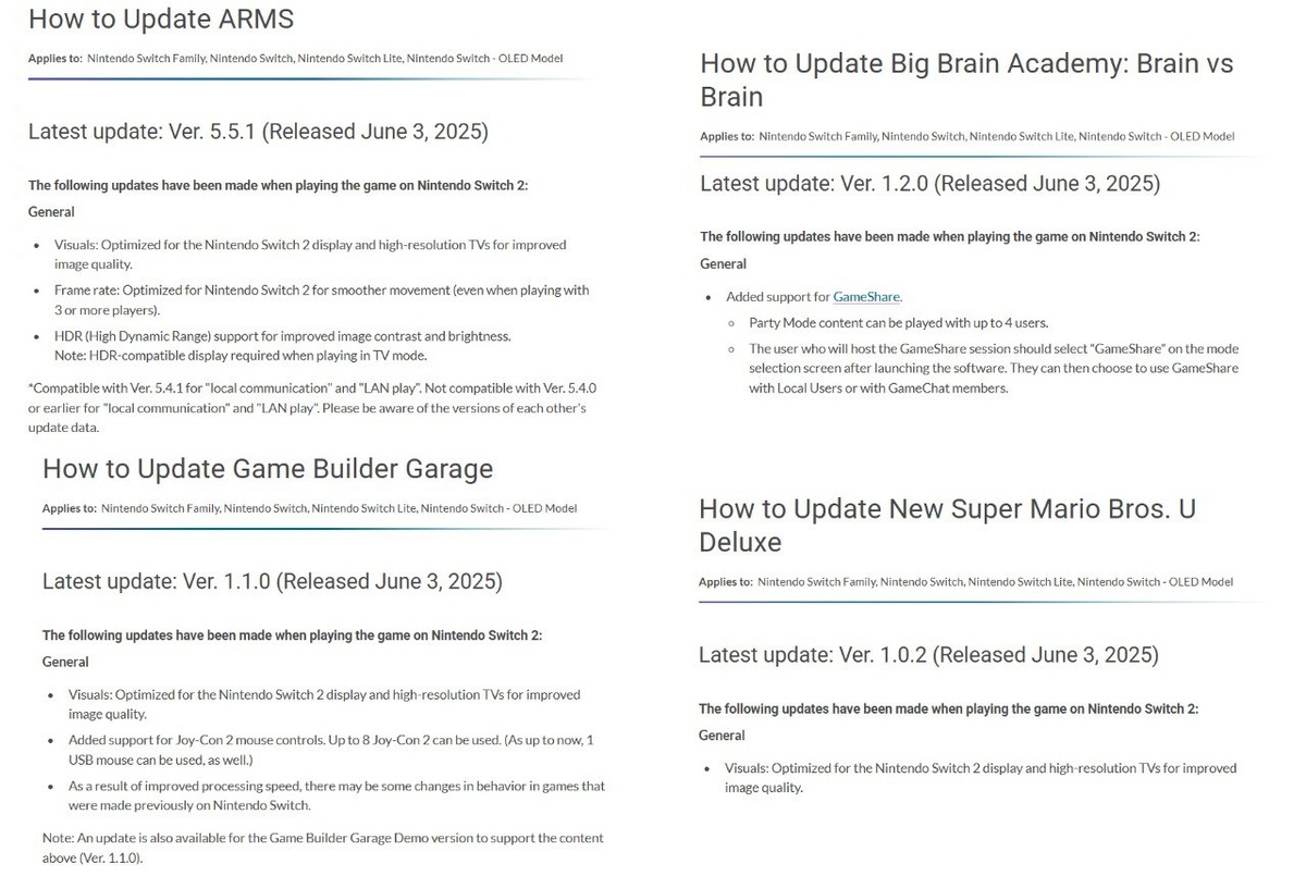 Наконец-то играбельно Техподдержка Nintendo расписала, какие игры для Nintendo Switch получат обновления на новой приставке. Среди них The Legend of Zelda: Link's Awakening и Echoes of Wisdom, Super Mario 3D World + Bowser's Fury, Captain Toad: Treasure Tracker и другие. Они получат визуальные улучшения, оптимизацию кадровой частоты и поддержку HDR, GameChat и новых Amiibo. Кроме того, The Legend of Zelda: Echoes of Wisdom получит небольшую QoL-фичу в виде возможности создавать список избранных копий. Официальный релиз Nintendo Switch 2 состоится уже завтра, 5 июня 2025 года.