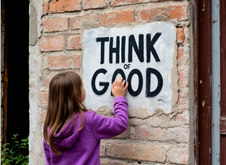 Шаги её стали лёгкими, словно она несла с собой частичку доброты, распространяя её дальше, по этим тихим улицам, по старым дворам и рамам окон, где когда-то было лишь облезшее кирпичное покрытие. Теперь каждое утро, каждый шаг и каждое новое знакомство напоминали ей о надписи: «ПОДУМАЙ О ДОБРОМ», и она знала наверняка: мир станет чуть щедрее, если каждый из нас добавит в него чуточку добра.