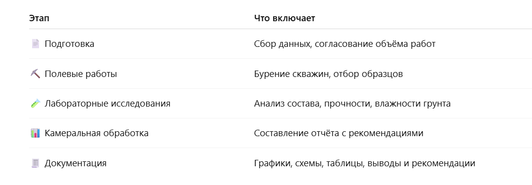 Перед началом любого строительства — от частного дома до крупного коммерческого объекта — необходимо понять, насколько надёжным будет основание здания. Ответ на этот вопрос дают геологические изыскания. Это обязательный этап инженерной подготовки, который позволяет избежать ошибок, сэкономить на фундаменте и обеспечить безопасность здания на годы вперёд. В этой статье расскажем, что входит в комплекс геологических изысканий, как проходят работы, сколько они стоят и кому стоит их доверить. Инженерно-геологические изыскания — это комплекс исследований, направленных на изучение состава, структуры, свойств и состояния грунтов на участке застройки. Они проводятся перед проектированием и строительством, чтобы: 🔎 Эти изыскания являются частью инженерно геодезических изысканий, которые в совокупности дают полную картину участка. Проводится анализ: 📌 Эти данные используются проектировщиком для расчёта нагрузок и подбора оптимального решения. 💡 Совет: если вы ещё не делали геодезические работ