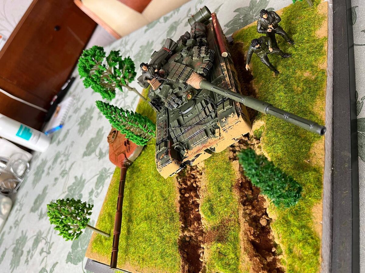 Всем добрый день. Танк Т 80БВ от фирмы «Звезда», а так же фигурки танкистов. Заржавелая башня от танка Т 72 от фирмы «Звезда». Краски: Jim scale и акрил от звезды ( вороненная сталь и черный акрил). Пигменты: ZIP ржавчина и темный песок. Автор: Арсений Овчинников #работы_подписчиков 👋 @themodelist