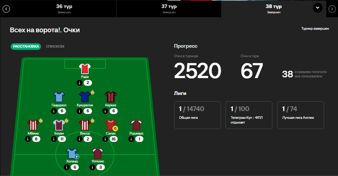 В фэнтези-турнире АПЛ на Спортсе чемпионом с убедительным отрывом стал Дмитрий Demusenko.Di. На сколько он улучшил результат с прошлого сезона, как с названием команды связан Гарет Саутгейт и почему он не считает Мохамеда Салах главным героем сезона? – В фэнтези играю уже 3-й сезон, – рассказывает Дмитрий. – Успех в АПЛ первый в принципе, оттого и приятнее, что достиг его в самой любимой лиге. В прошлом сезоне тоже внимательно следил за играми, составами. В итоге занял 378-е место. Не хватило опыта и календарного планирования. – А что помогло так прибавить? – В первую очередь как раз стало больше планирования. Обязательно вручную на бумагу переписываю текущий состав, все игры тура, смотрю проблемных игроков: у кого травма, тяжелые матчи. Дальше уже изучаю календарь. – Как для вас складывался сезон в фэнтези? – Поначалу не особо следил за общим рейтингом. Удалось сразу забраться в топ и особо не спускаться. Сначала результаты были немного волнистыми, но в целом сразу на верхушке оказа
