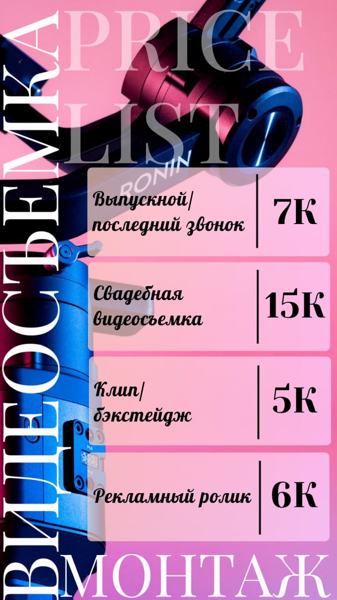 РАД СООБЩИТЬ! У меня появился актуальный прайс-лист на услуги видеосъемки и монтажа! 🎉