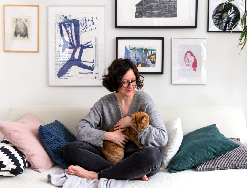 Стены украшены яркими постерами, купленными на зарубежных площадках и в принт-маркетах, а также собственными работами Натальи. Растения, особенно суккуленты в керамических кашпо, оживляют пространство и добавляют свежести.