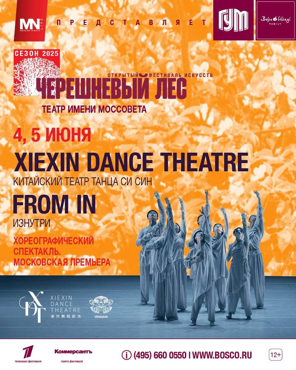 Театр Моссовета неизменно рад приветствовать на своей сцене гостей из разных регионов и стран и поддерживать и укреплять межкультурный диалог! Сегодня и завтра в наших стенах выступает коллектив из Шанхая! Открытый фестиваль искусств «Черешневый лес» совместно с концертным агентством «Подмосковные вечера» представляют знаменитый хореографический спектакль From IN («Изнутри») шанхайской труппы XIEXIN DANCE THEATRE 4 и 5 июня 2025 года на сцене Государственного академического театра имени Моссовета состоится московская премьера постановки From IN («Изнутри») китайского театра XIEXIN DANCE THEATRE. Для труппы это станет первым выступлением в Москве. Спектакль отличается самобытной хореографией, где органично сливаются элементы традиционного китайского балета и современных танцевальных направлений, заимствованных из различных культур. Это создает своеобразный мост между прошлым и настоящим, между Востоком и Западом, а также побуждает к размышлениям о сущности человека и его месте в совре