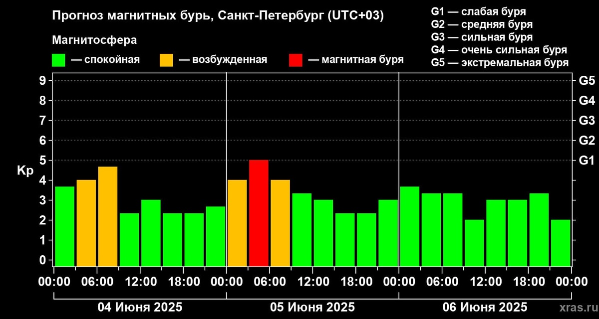 Сегодня и завтра (особенно завтра) буря еще собирается бушевать, но уже во второй половине дня 5 июня магнитосфера успокоиться до комфортных значений!