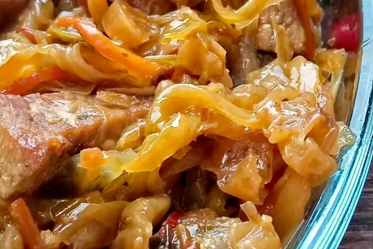 классический, но невероятно вкусный вариант. Остринка морковки по-корейски в сочетании с тушёной капустой и сочной свининой делает блюдо насыщенным, бодрящим