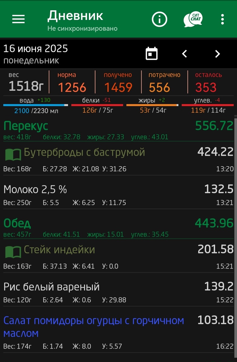 🥑 Я худею. 📌 Отчёт по калориям за 15.06 - 18.06.25