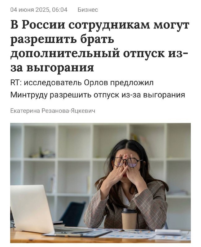 В России хотят ввести дополнительный отпуск для тех, кто словил выгорание — инициатива уже отправлена в Минтруд