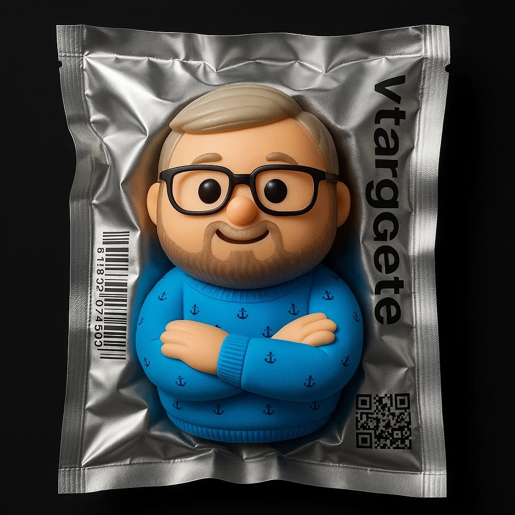 Продолжаю подкидывать. Рисуем игрушку-эмодзи в упаковке на основе нашего фото. Делал в Sora, но, думаю, и некоторые другие нейросети справятся. Промпт: Рисуем на основе эмодзи 👨🏻💻 Сферическая игрушка похожая на персонажа с прикрепленного фото, излучающая тепло и очарование, заключена в серебристый металлический упаковочный пакет с эффектом вакуумной запечатки. На его поверхности выгравирован вертикальный полосатый текст [vtargete], дополненный штрихкодами и QR-кодами, подчеркивающими футуристический стиль. Игрушка, выполненная из матового пластика или резины, мягко контрастирует с текстурой упаковки, сложенной с реалистичной точностью. Дизайн упаковки воплощает киберконсьюмеристскую эстетику, а минималистичный черный фон усиливает визуальный эффект. Изображение в разрешении 4K с высокой детализацией, реалистичным стилем и мягким студийным освещением создает завораживающий образ. Вертикальный размер холста. Даем персональные рекомендации по вашему офферу → лендингу → шагам воронки